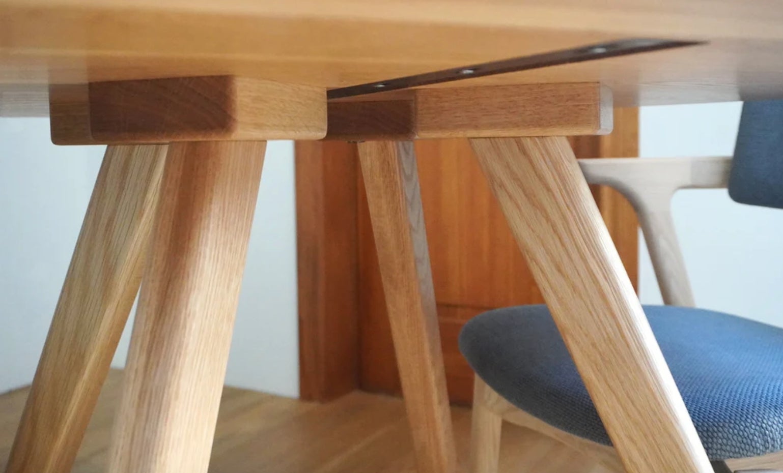 通常の4本脚の他に、よりコンパクトな3本脚もご用意しました。ライフスタイルやダイニングチェアの数に合わせて、お選びいただけます。